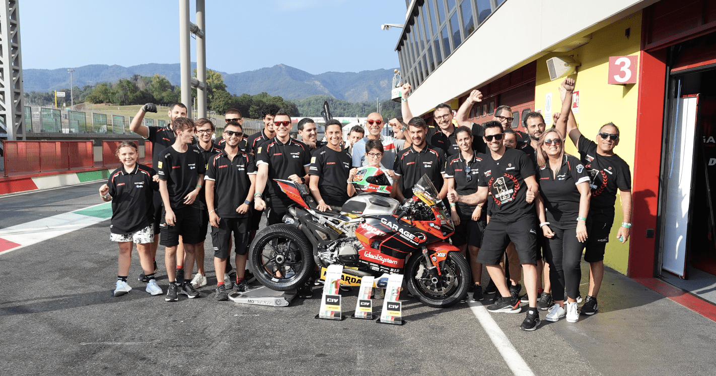 “Sono soddisfatto in veste non solo di Team Principal ma anche in quella di sponsor perché ancora una volta andiamo a casa a suon di uno-due! Michele Pirro ha raggiunto con il decimo titolo italiano la doppia cifra ed è ormai garanzia di vittoria o di podio. Per quanto riguarda Stirpe, siamo ad un soffio del titolo ed è quasi bello che i giochi non siano chiusi perché almeno andiamo a Imola ancora più carichi e convinti. Non abbiamo bisogno di cercare le motivazioni ma se ci arrivano ulteriori stimoli, non possiamo che esserne contenti!”