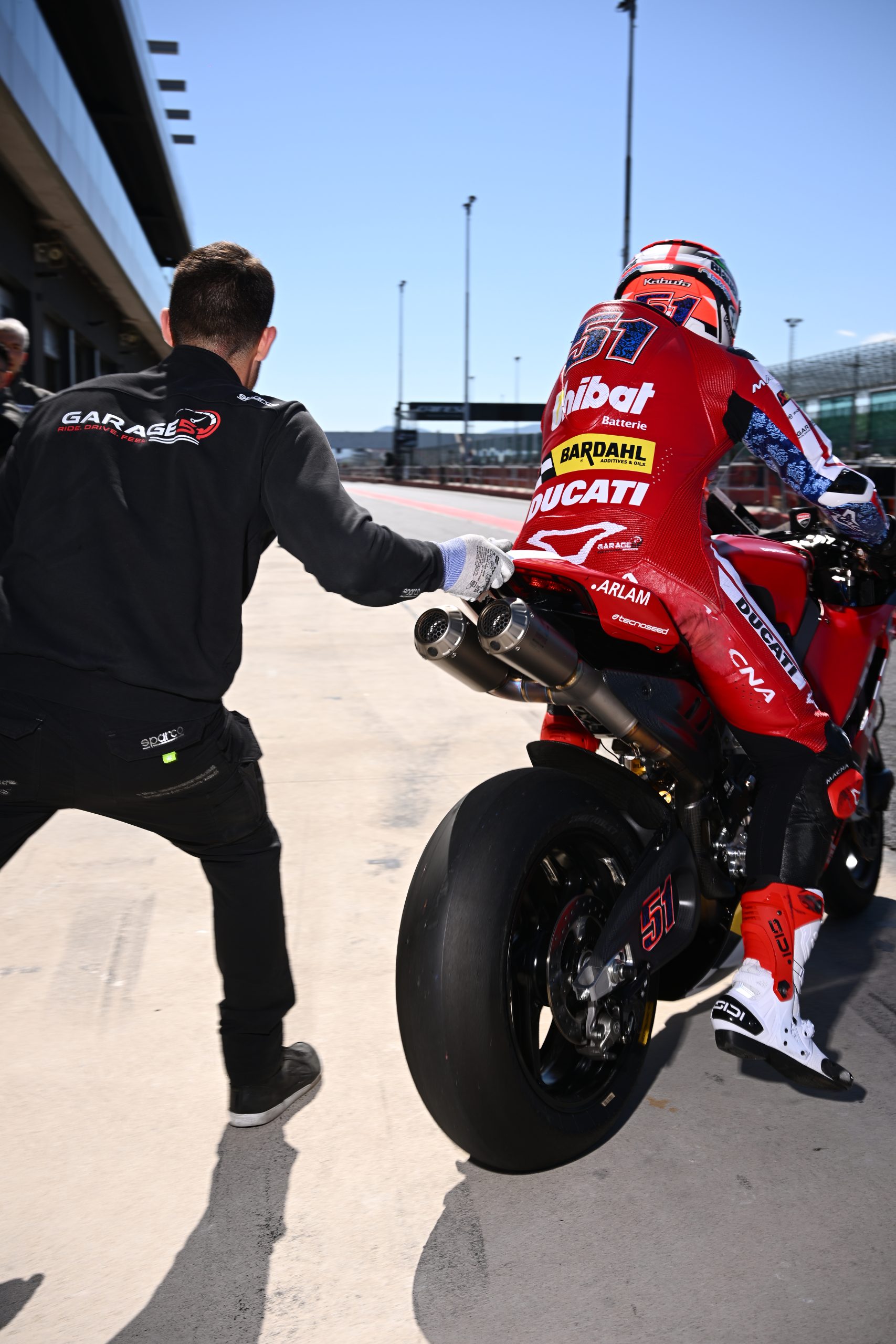 “È stato particolarmente emozionante entrare nel box martedì mattina e vedere la Ducati vestita con i nuovi colori del nostro Garage 51 Racing Team powered by DTO. Lavorare in pista insieme al mio staff, professionisti con cui collaboro ogni giorno al Garage 51, ha rappresentato qualcosa di speciale: una dimensione nuova, che mi ha trasmesso grande fiducia e serenità. Non vedo l’ora che la stagione prenda il via, per ora ci manca mezzo secondo ma stiamo lavorando sodo per colmare il gap e come sempre io darò il massimo con l’obiettivo di ripagare in pista, la fiducia di chi, dopo tante stagioni, continua a credere in me e a sostenermi, accompagnandomi da tanti anni, giro dopo giro, in questo percorso!”