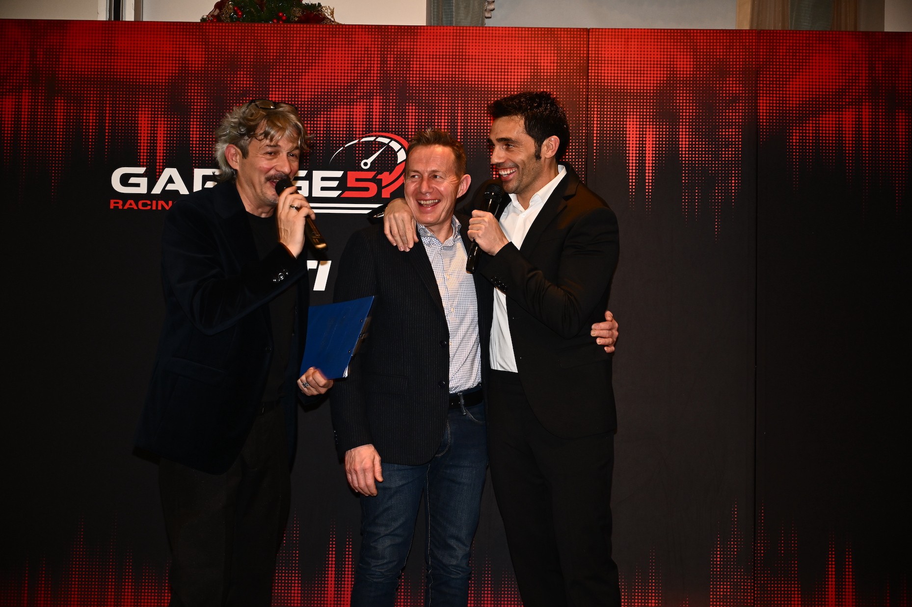 Il Grand Hotel da Vinci di Cesenatico ha ospitato sabato 30 novembre la “Celebration Night”, evento pensato e fortemente voluto da Michele Pirro non solo per festeggiare il suo 10° titolo tricolore e il primo alloro del Garage 51 Racing Team by DTO con Davide Stirpe, ma per condividere con gli oltre 350 invitati la concretezza dei progetti futuri e il proseguimento di quelli che già esistono. Un cammino quindi quello della “Celebration Night” in cui si è passati dalle celebrazioni per i successi ottenuti in pista alla presentazione dei programmi futuri tra i quali spiccano il Barni 51 Racing Lab e la prima edizione del Trofeo V4 Elite Cup, argomenti sui quali si è positivamente espresso anche l’amministratore delegato di Ducati, Claudio Domenicali che, intervenuto alla serata, ha sottolineato quanto la passione e la dedizione di Michele Pirro si esprima tanto in pista quanto nell’attività esterne.