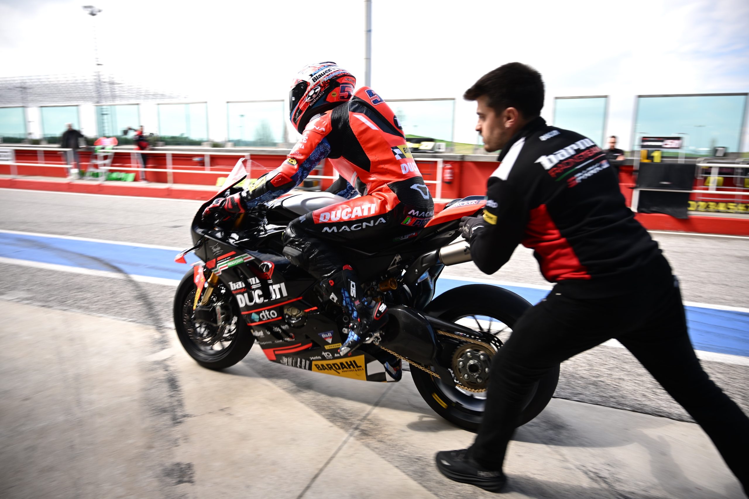 “A Misano abbiamo lavorato sfruttando gli ultimi due giorni di prove prima che il campionato inizi e nonostante un po’ di maltempo, sono state 48 ore molto produttive, abbiamo lavorato tanto sulle sospensioni Ohlins-Andreani che sono la vera novità tecnica sulla Ducati del Barni 51 Racing Lab, mentre per quanto riguarda l’estetica ci siamo presentati con la nuova livrea e il numero 1 sul cupolino! Esco da Misano molto contento e con un buon feeling in sella, insomma siamo pronti per affrontare il CIV consapevoli che sarà una stagione molto impegnativa! Colgo l’occasione fornitami da questi test per ringraziare ancora una volta Barni perchè con lui e tutto il team oltre alla parte sportiva portiamo avanti anche il 51 Racing Lab e nel box tanto in questi giorni che poi durante la stagione saranno presenti dei ragazzi dei corsi per cominciare a prendere dimestichezza con il lavoro racing! ”
